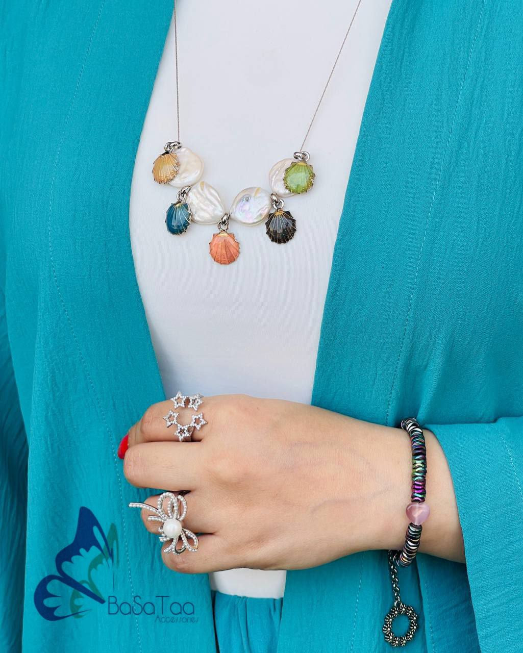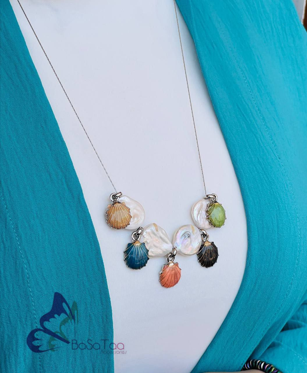 Stainless Steel Necklace , Silver Plated Shells , Natural PearlsΒ